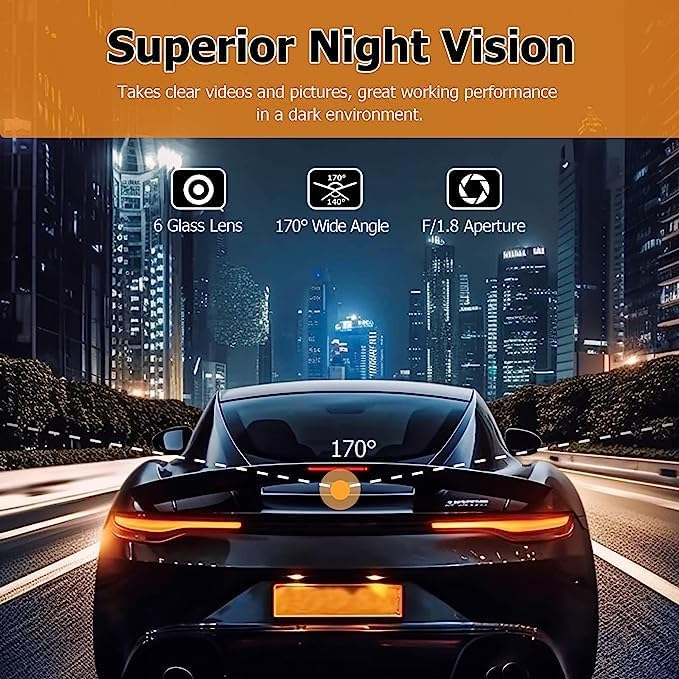 Capture every detail on the road with the pristine 2K+1080P resolution, ensuring crystal-clear footage for both the front and rear view. Equipped with a 170° wide-angle lens, this dash camera offers an extensive field of view, allowing you to record the entire scene with remarkable clarity.