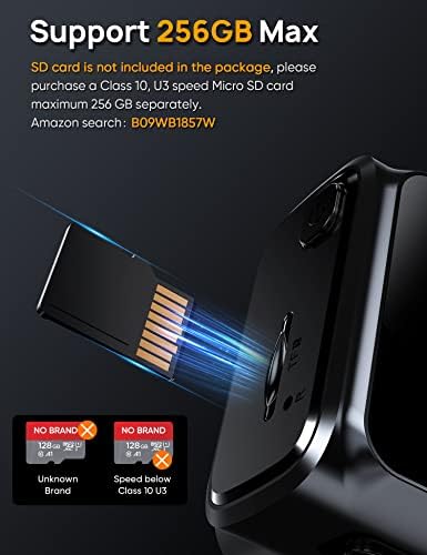 Never worry about running out of storage space again. This dash cam supports a maximum capacity of 256GB, accommodating countless hours of high-quality video recordings. With loop recording, the dash cam automatically overwrites the oldest files when the memory card is full, allowing uninterrupted recording without any manual intervention.